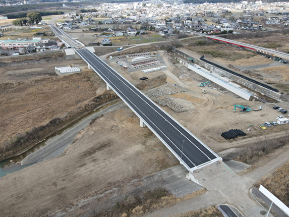 橋梁上部工(P2-P5)製作加工93ton、架設93ton 床版工1式、支承工1式、橋梁付属物工1式、仮設工1式RC橋脚工(ラーメン部)2基 |