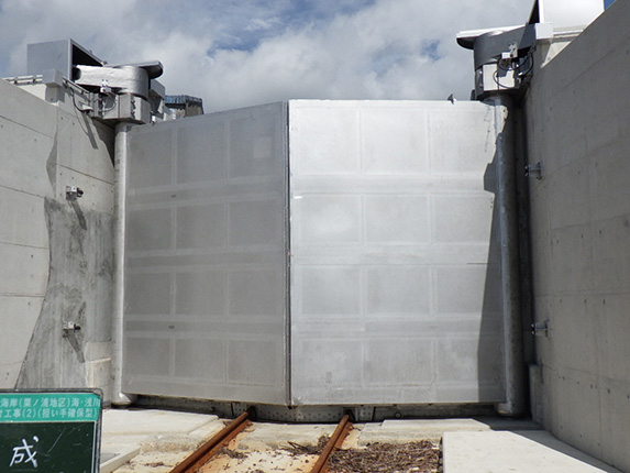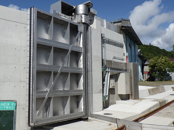 海岸・河川の堤防に設置される「陸閘」や、